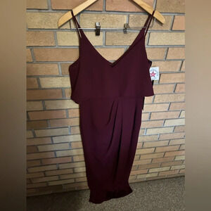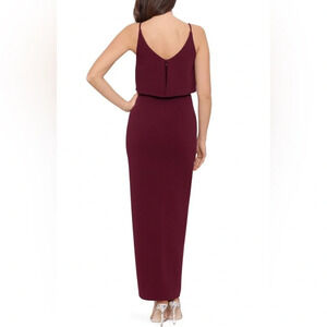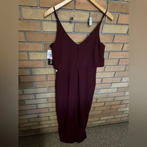 NWT XSCAPE Scuba Crepe Popover Faux Wrap Midi Dress Size 8 Maroon