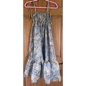 NWT XXS Floral Blue Below the knee length chiffon dress with liner & adj straps