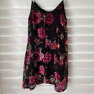 NWT XXS Francesca's Mi Ami Y2K Burnout Velvet Floral Sleeveless Mini Dress Black