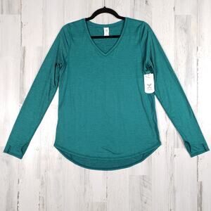 NWT Xersion Quick Dry Green long Sleeve V-Neck Shirt Women's Size Small