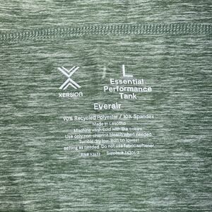 The NWT Xersion Women's Everair Tank Top in Harbor Green is a stylish activewear top perfect for gym workouts or yoga sessions. Made from a recycled polyester blend, this tank top features a heather pattern, a sleeveless design, and a round neckline with a racerback strap. The pullover style and quick-dry, breathable fabric make it ideal for staying comfortable during intense physical activities. With its anti-odor properties, the Xersion tank top in size L offers both style and functionality for women looking for high-quality athletic wear.