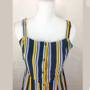NWT Xhilaration Women Sz Small Button Front Dress Striped Pockets Side Cut Outs