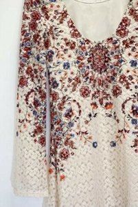 NWT Xhilaration Women Dress Western Ivory Floral Lace BoHo Long Bell Sleeve