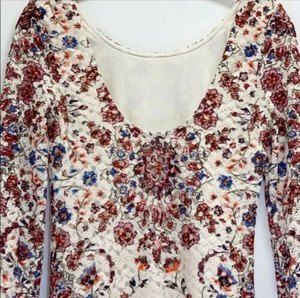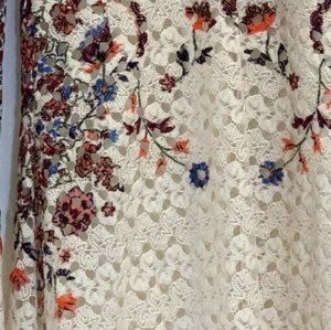 NWT Xhilaration Women's Dress Ivory Floral Lace BoHo A-Line Long Bell Sleeves.