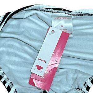 NWT Xhilaration Women’s Black And White Stripe Cheeky Swim Bottoms, Size M (4-6)
