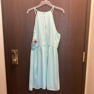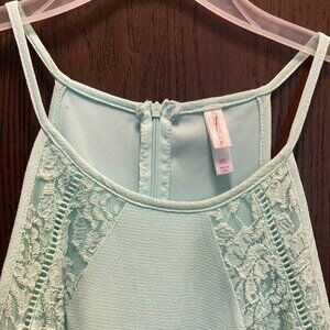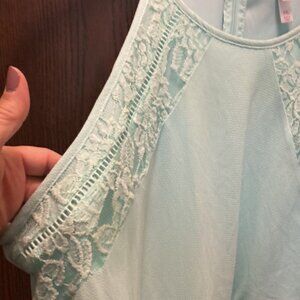 Cute flowey mint green with lace detail skinny straps halter style zipper back