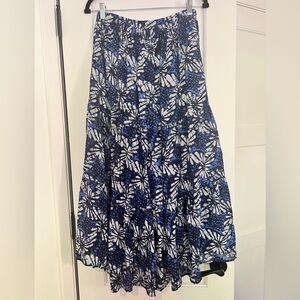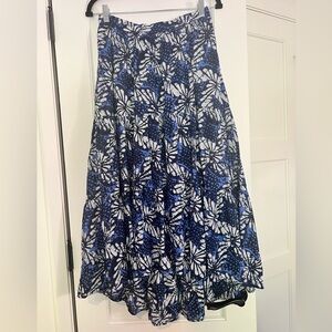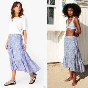 NWT Xirena Iris Tiered Cotton Midi Skirt Water Blue Floral Print S