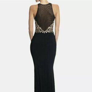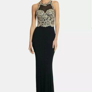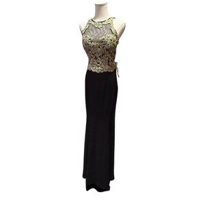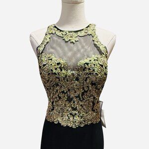 NWT Xscape Black Gold Full Length Illusion Sleeveless Gown Womens Size 12
