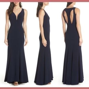 ![NWT Xscape Deep V-Neck Trumpet Gown in Navy Blue [ SZ 12 ] - Picture 6 of 8](https://di2ponv0v5otw.cloudfront.net/posts/2025/09/14/68c6d21c292f7db27d003ad0/m_68c6d21e292f7db27d003c0b.jpeg)