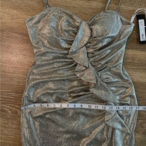 NWT Xscape Dress Women's Metallic Size 4 Ruffled Sheath Silver Wedding cocktail
