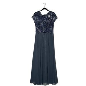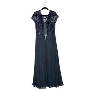 NWT Xscape Embellished Chiffon Beaded Top Maxi Dress Women's Gray Size 8