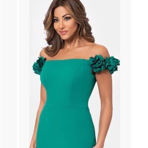 NWT Xscape Flower Off the Shoulder Scuba Crepe Gown-Q17