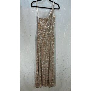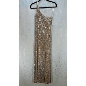 NWT Xscape One Shoulder Stretch Sequin Gold Gown $259