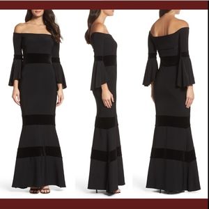 NWT Xscape Velvet Trim Off Shoulder Mermaid gown