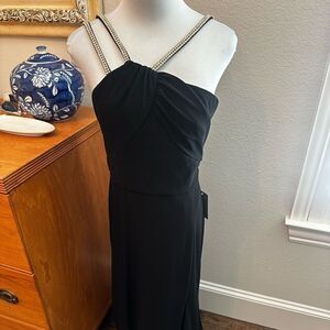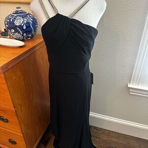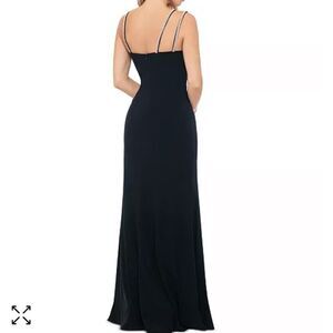 NWT Xscape Women's Asymmetric Rhinestone-Strap High-Slit Gown