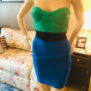 👗Captivating bandage (feels like wide elastic) dress in deep but vivid green (bit deeper than pic but closest I could get to true color) and royal blue