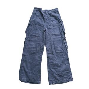 NWT Y2K Black Denim High Rise Cargo Jeans Baggy Button Pocket XL Grunge Utility