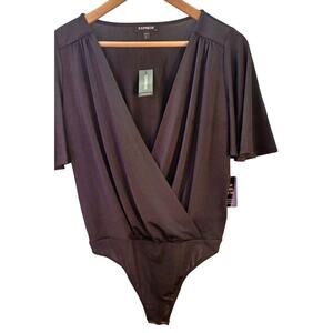 New with Tags Express Black V-Neck Wrap Bodysuit, Size Small, Snap Closure, Soft Stretchy Fabric