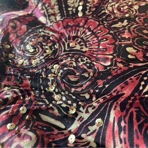 NWT Y2K Silk Red Paisley Beaded Sequin Babydoll Top 2 Petite 2P Deadstock Boho