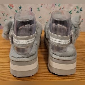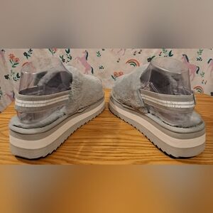 NWT Y2K Soft Grey Fuzzy Platform Comfy Preppy Peep Toe Sandal Shoe SZ 5