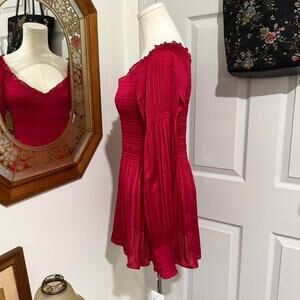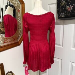 NWT Y2K Sunny Leigh Red Long Balloon Sleeve Pleated Romantic Fairy Tunic Top M