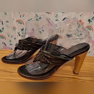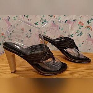 NWT Y2K True Religion Brown Leather Boho Indie Neutral Sandal Heel Shoe SZ 37EU
