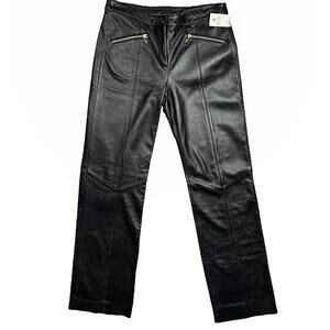NWT Y2K Wilson’s Black Genuine Leather Pants Mid Rise Zippers Detailing Size 10