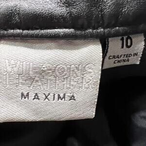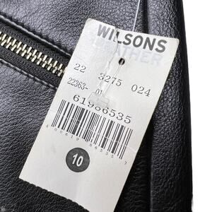 NWT Y2K Wllson’s Black Genuine Leather Pants Mid Rise Zippers Details Size 10, Half lined with raw hem so can be cut shorter if needed. There are a couple of minor hanger indentions on the waist, a couple very small dot indentions at the cuff, and a few minor scuffs from storage (see photos)
