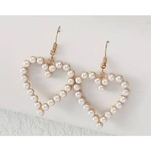 NWT Y2K Bohemian Heart Shaped Faux Pearls With Gold Color Dangle Earrings