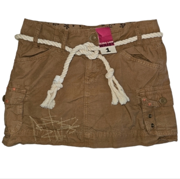 NWT! Y2k Mini Skirt Cargo Old Navy Ultra Low Waist Khaki Rope Belt 2000s NEW