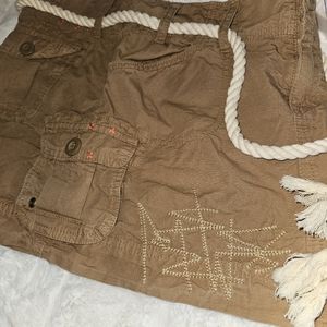 Y2k Old Navy Low Rise Mini Skirt Cargo Khaki with Rope Belt Early 2000's