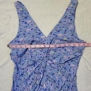 NWT YAS Y.A.S Blue Purple Cropped Jumpsuit Wide Leg Knot Front Zip Back Size 4