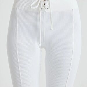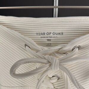 NWT YEAR OF OURS Ribbed Football Leggings Lace-Up Pants • White • XS