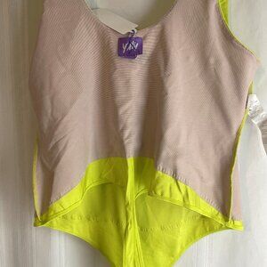NWT YITTY Shapewear 1X Thong Bodysuit Open Bust Limelight Yellow
