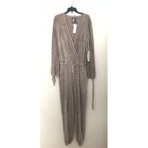 Super cozy, super casual, super chic. Our lounge jumpsuit in velour is perfect for any occasion - whether its running errands by day or sipping hot chocolate next to the fireplace by night. Drawcords at waist and sleeves. Slant pockets on front.