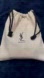Elegant cream drawstring pouch with YSL Beauté logo. Perfect for storing small items.