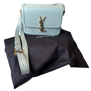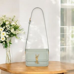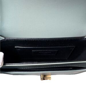 Color: “Quiet Blue” (appears as a sea foam green) with bronze/gold hardware