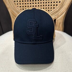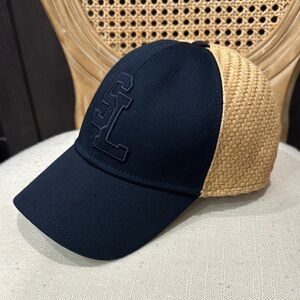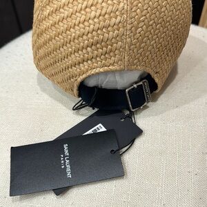NWT YSL Yves Saint Laurent Navy and Rafia Cap