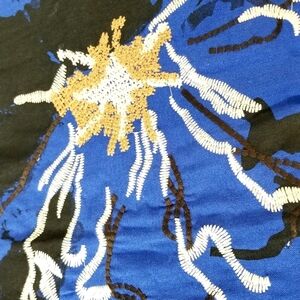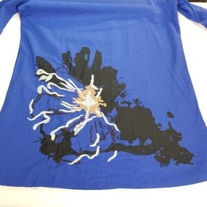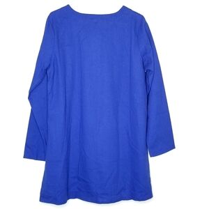 NWT Ya Wei Blue Scoop Neck Longsleeve Linen Short BoHo Dress, XXL
