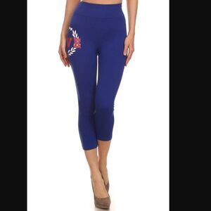 NWT Yelete Womens "LOVE" Screen Print Capri Leggings in Royal Blue | OS