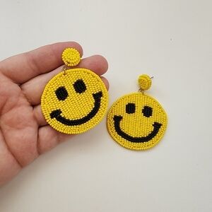 Super cute yellow seed beaded smiley / happy face dangle earrings. Felt back. Lightweight.