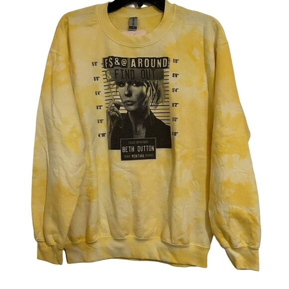 NWT Yellow Tie-Dye Beth Dutton Mugshot Graphic Crewneck Sweatshirt M
