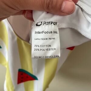 Modern yellow and white striped one piece swimsuit by PatPat, marked size L. Watermelon print, deep schoop cut front and back.