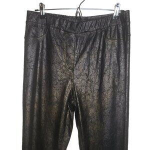 NWT Yest Sz 10 Ornika Essential Texured Vegan Leather Pants, Black/Copper (1420)