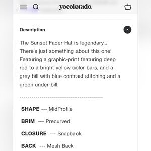 New in Box! Never been worn. Awesome YoColorado brand "Sunset Fader" style Trucker Hat. Retails for $38. Hat in perfect condition. Box has small rip on the outside. see photo. Snap back for adjustable fit.
