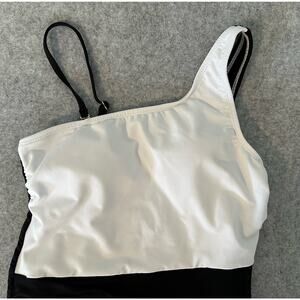 One Shoulder tank strap one shoulder spaghetti strap. Tummy Control Bathing suit: The monokini swimsuits provide moderate bottom coverage and support your breasts with removable padded push-up bra cups. One Piece Swimsuit: The slimming swimsuit is made of comfortable material, which is soft, breathable durable and quick dry. Black and white. Size small.