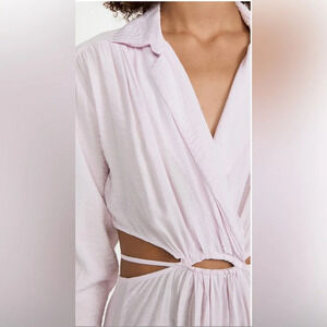 Partial elastic cutout waist with wraparound tie; Pullover design, no closure