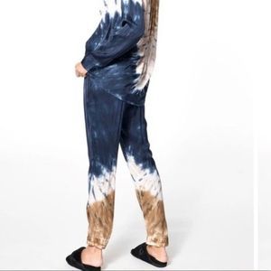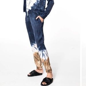 New with tags young fabulous and broke dark blue tie dye joggers made of viscose and rayon. Feels super silky and is a size medium.