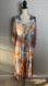 This dress is a dreamy, bohemian-inspired maxi that radiates effortless style and laid-back sophistication. It features a striking tie-dye pattern in a harmonious blend of earthy mustard, soft lavender, dusky mauve, and pale sky blue. The colors swirl and fan out across the dress in a sunburst effect, giving it a hand-painted, artisanal feel. The silhouette is relaxed and breezy, with a deep V-neckline that’s accentuated by a delicate center tie, adding a touch of femininity. Long, voluminous sleeves are gathered at the wrists with subtle elastic cuffs, creating a soft balloon shape that adds to the dress’s ethereal vibe. The skirt flows beautifully to a midi or ankle-grazing length, with a tiered hem