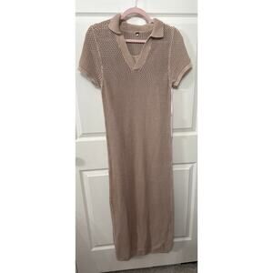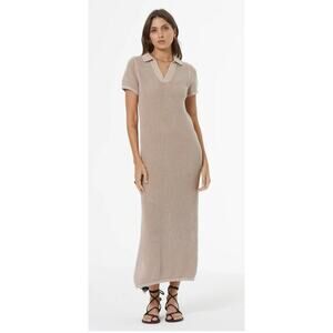 NWT Young, Fabulous,& Broke Faye Crochet Maxi Dress in Sandstone Mineral Wash, S